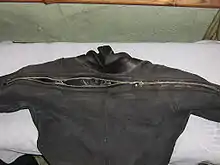 Modern dry suits have a watertight zipper for entry and exit. The original bronze-toothed version was developed by NASA to hold air inside space suits. This complex and special zipper is one of the most expensive parts of the suit. Heavy-duty, medium, and lightweight versions are made.[1]: Ch4 A later design uses injection moulded plastic teeth, and these are lighter, more flexible and less costly.[16] The zipper is commonly installed across the back of the shoulders, since this placement compromises overall flexibility the least, and usually puts the least stress on the zipper — but this design normally means the wearer requires assistance to close and open the zipper. The other common zipper placement is diagonally across the torso, which allows self-donning.[1]: 59 Other designs place the zipper straight down the middle of the back (early Poseidon Unisuit), up one side of the front, around the back of the neck and partway back down the front (later model Poseidon Unisuit[1]: 50 ) or on a wide tubular chest tunnel entry opening which is folded down and clipped round the waist after sealing the zip (some Typhoon suits). The waterproof-zipper is stiff, and cannot stretch at all, which can make it difficult for a user to get into and out of the suit.[1]: 43 Dry suits may also be fitted with an extra waterproof "fly", "relief" or "convenience" zipper to let the user urinate when out of the water when the suit is worn for long periods.[1]: 85