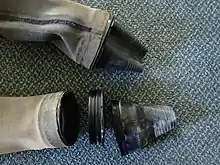 Latex rubber ankle seals are sometimes fitted in place of socks and can allow better foot control of water skis and surfboards.[1]: 55 Survival suits may have neoprene socks of the same material as the suit, with tougher soles and ankle ties to keep them on the feet, as the "one-size fits all" socks must be too big for most users.[21][22]