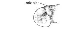 After implantation, around the second to third week the developing embryo consists of three layers: endoderm, mesoderm and ectoderm. The first part of the ear to develop is the inner ear,[19] which begins to form from the ectoderm around the 22nd day of the embryo's development.[18] Specifically, the inner ear derives from two thickenings called otic placodes on either side of the head. Each otic placode recedes below the ectoderm, forms an otic pit and then an otic vesicle.[20] This entire mass will eventually become surrounded by mesenchyme to form the bony labyrinth.[20][21]