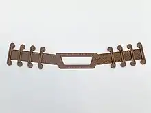 An ear saver, also known as mask strain release strap or mask extender,[1] is an accessory to personal protective equipment (PPE), relieves strain on a mask wearer's ears created through the loops of masks. Ear savers were designed as novel items during the COVID-19 pandemic by the open-source hardware community in response to requests from medical professionals reporting heavy strain on their ears.[2] Ear savers have since been commercialized for a broader population of users as the pandemic wore on.[3][4]