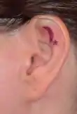 26. Watson, D (2002). "Torn earlobe repair". Otolaryngologic Clinics of North America. 35 (1): 187–205, vii–viii. doi:10.1016/s0030-6665(03)00102-6. PMID 11781215.