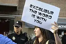 On 7 October, Madrid's regional government got a court order to euthanize Romero's pet dog, Excalibur, concerned that it posed a risk as a reservoir host.[13] By the afternoon there were over 30 animal rights activists who had barricaded the apartment to prevent officials from removing the dog. A number of online petitions were started rallying to save the dog, garnering hundreds of thousands of indications of support. Ramos' quarantined husband, Javier, called on a veterinarian radio show host, and recorded a video appeal, for help to save his dog. On 8 October, Spanish authorities removed, sedated and euthanized the dog and arranged for the safe disposal of its remains.[14]