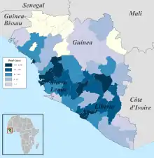 The Neini Chiefdom in Koinadugu District was subject to isolation after Ebola cases.[104] On 19 November, it was reported that the Ebola virus was spreading intensely; "much of this was driven by intense transmission in the country's west and north", the WHO said.[105]