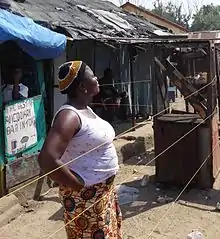 Bushmeat has also been implicated in spreading Ebola disease, either by handling the raw meat or through droppings from the animals.[18] It is the raw blood and meat that is thought to be more dangerous, so it is those that hunt and butcher the raw meat that are more at risk as opposed to cooked meat sold at market.[19] Health care workers in Sierra Leone have been warned not to go to markets.[20]