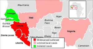 ![]() Simplified Ebola virus epidemic situation map | |||||||||||||||||||||||||||||||||||||||||||||||||