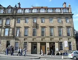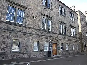 Brown Square was built as a residential development in 1763 and demolished in the late nineteenth century.[18] The Brown Square School of Medicine was established by James Syme, later Professor of Surgery in the university. Syme taught anatomy and surgery and was joined in the school by John Macintosh who taught medicine and midwifery and John Argyll Robertson who taught materia medica. When Syme resigned from the school his anatomy class was continued by Alexander Jardine Lizars, later professor of anatomy in the University of Aberdeen. The school closed in 1836 when the teaching was transferred to 11 Argyle Square.[3]