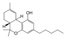 The most prevalent psychoactive substances in cannabis are cannabinoids, particularly THC. Some varieties, having undergone careful selection and growing techniques, can yield as much as 34% THC.[19] Another psychoactive cannabinoid present in Cannabis sativa is tetrahydrocannabivarin (THCV), but it is only found in small amounts and is a cannabinoid antagonist.[20]
