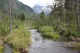 Species of fish living in cold or cool water can see a reduction in population of up to 50% in the majority of U.S. fresh water streams, according to most climate change models.[89] The increase in metabolic demands due to higher water temperatures, in combination with decreasing amounts of food will be the main contributors to their decline.[89] Additionally, many fish species (such as salmon) utilize seasonal water levels of streams as a means of reproducing, typically breeding when water flow is high and migrating to the ocean after spawning.[89] Because snowfall is expected to be reduced due to climate change, water runoff is expected to decrease which leads to lower flowing streams, effecting the spawning of millions of salmon.[89] To add to this, rising seas will begin to flood coastal river systems, converting them from fresh water habitats to saline environments where indigenous species will likely perish. In southeast Alaska, the sea rises by 3.96 cm/year, redepositing sediment in various river channels and bringing salt water inland.[89] This rise in sea level not only contaminates streams and rivers with saline water, but also the reservoirs they are connected to, where species such as Sockeye Salmon live. Although this species of Salmon can survive in both salt and fresh water, the loss of a body of fresh water stops them from reproducing in the spring, as the spawning process requires fresh water.[89] Undoubtedly, the loss of fresh water systems of lakes and rivers in Alaska will result in the imminent demise of the state's once-abundant population of salmon.