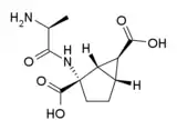 - Bueno AB, Collado I, de Dios A, Domínguez C, Martín JA, Martín LM, Martínez-Grau MA, Montero C, Pedregal C, Catlow J, Coffey DS, Clay MP, Dantzig AH, Lindstrom T, Monn JA, Jiang H, Schoepp DD, Stratford RE, Tabas LB, Tizzano JP, Wright RA, Herin MF (August 2005). "Dipeptides as effective prodrugs of the unnatural amino acid (+)-2-aminobicyclo[3.1.0]hexane-2,6-dicarboxylic acid (LY354740), a selective group II metabotropic glutamate receptor agonist". J. Med. Chem. 48 (16): 5305–20. doi:10.1021/jm050235r. PMID 16078848.