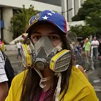 During demonstrations and protests where tear gas (such as CS gas[59]) is employed by riot police, gas masks are commonly used by police[60] and demonstrators alike.[61][62][63] Journalists covering these events also use respirators, and where use of tear gas spreads into residential areas, even those not on the front lines may buy them. Access to respirators has been restricted by authorities who regard them as tools of resistance, causing circumvention and smuggling.[61]