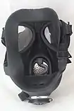 Filters may be contained in cartridges or canisters; there are also flexible flat and pancake-style filters (see illustrations).[2] Filters are usually mounted on the face, but in the case of powered air-purifying respirators, they are mounted on the belt, and a fan drives air through them and into the face mask. Most masks take one or more filters.[6]