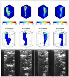 where is the sensitivity distribution of an ECVT sensor as shown to the right. Upon application of the sensitivity gradient as described in,[11] a 3D and 2D velocity profile corresponding to the figure above are shown in the figure to the right.