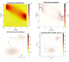 Velocimetry refers to techniques used to measure velocity of fluids. The use of the sensitivity gradient[11] enables the reconstruction of 3D velocity profiles using an ECVT sensor, which can readily provide information of fluid dynamics. The sensitivity gradient is defined as
