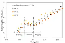 ECVT has been utilized in environments of high temperatures up to 650 °C[30] to image and characterize fluidized beds under high temperatures such as those used in fluidized bed reactors, fluid catalytic cracking and fluidized bed combustion. The application of this technology to high temperature fluidized beds has allowed the in-depth analysis of how temperature affects flow behavior in the beds. For instance, in a slugging fluidized bed with large column height to column diameter ratio with Geldart Group D particles, increasing temperature up to 650 °C can change the density and viscosity of the gas, but has negligible effect on slugging behavior such as slug velocity and frequency.