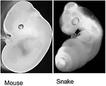 Embryos from numerous plant and animal species are studied in biological research laboratories across the world to learn about topics such as stem cells,[33] evolution and development,[34] cell division,[35] and gene expression.[36] Examples of scientific discoveries made while studying embryos that were awarded the Nobel Prize in Physiology or Medicine include the Spemann-Mangold organizer, a group of cells originally discovered in amphibian embryos that give rise to neural tissues,[37] and genes that give rise to body segments discovered in Drosophila fly embryos by Christiane Nüsslein-Volhard and Eric Wieschaus.[38]
