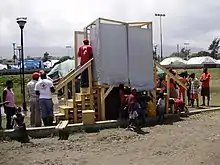 Emergency toilet in Haiti, suitable for areas where digging pit latrines is not possible