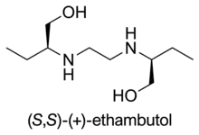 - Ethambutol: Whereas the (S,S)-(+)-enantiomer is used to treat tuberculosis, the (R,R)-(–)-ethambutol may cause blindness.[20]