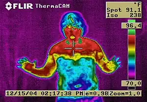 A thermal image of an ETS patient 2 years after surgery, showing corposcindosis (split-body syndrome)