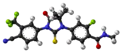 Enzalutamide, sold under the brand name Xtandi, is a nonsteroidal antiandrogen (NSAA) medication which is used in the treatment of prostate cancer.[2][7] It is indicated for use in conjunction with castration in the treatment of metastatic castration-resistant prostate cancer (mCRPC),[2] nonmetastatic castration-resistant prostate cancer,[2] and metastatic castration-sensitive prostate cancer (mCSPC).[8] It is taken by mouth.[2]