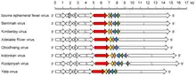 Ephemerovirus genomes are linear, monopartite, and around 14.6–14.8 kb in length. The genome codes for five to nine proteins.[2][3]