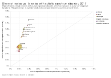 Boys have a higher chance of being diagnosed with autism than girls. The ASD sex ratio averages 4.3:1 and is greatly modified by cognitive impairment: it may be close to 2:1 with intellectual disability and more than 5.5:1 without. Recent studies have found no association with socioeconomic status, and have reported inconsistent results about associations with race or ethnicity.[4]