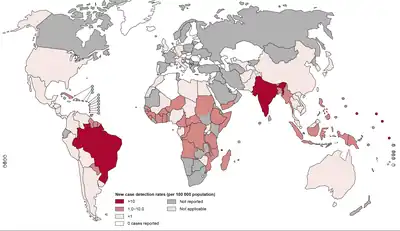 - "Leprosy new case detection rates, 2016". WHO. WHO. Retrieved 19 December 2019.