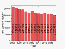 - "New case detection trends in leprosy" (PDF). WHO. Archived from the original (PDF) on 2020-09-15.
