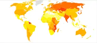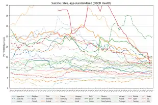 {{cite book}}:|author=has generic name (help) - "Suicide rates, crude - Data by country". WHO. 2018-04-05.