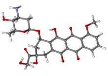 One pathway[18] starts from Daunorubicin, a common byproduct found in fermentation, since it is relatively easily available and already structurally similar to the product (only requiring minor alterations).