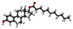 Estradiol undecylate has also been used to treat breast cancer in women.[34] It has been used in menopausal hormone therapy as well, for instance in the treatment of hot flashes and other menopausal symptoms.[8] Along with estradiol valerate, estradiol cypionate, and estradiol benzoate, estradiol undecylate has been used as an intramuscular estrogen in feminizing hormone therapy for transgender women.[13][14][15] It has been used at doses of 100 to as much as 800 mg per month by intramuscular injection for this purpose.[14][15][13][35][36][37]