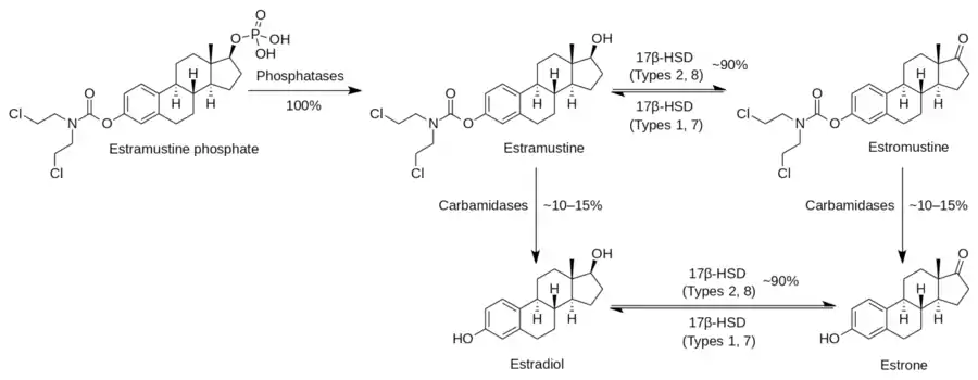 | Metabolites | • Estramustine[3][1] • Estromustine[3][1] • Estradiol[3][1] • Estrone[3][1] • Phosphoric acid[3][1] • Normustine[5] |