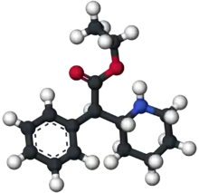 Tiny amounts of ethylphenidate can be formed in vivo when ethanol and methylphenidate are coingested, via hepatic transesterification.[3] Ethylphenidate formation appears to be more common when large quantities of methylphenidate and alcohol are consumed at the same time, such as in non-medical use or overdose scenarios.[4] However, the transesterfication process of methylphenidate to ethylphenidate, as tested in mice liver, was dominant in the inactive (−)-enantiomer but showed a prolonged and increased maximal plasma concentration of the active (+)-enantiomer of methylphenidate.[5] Additionally, only a few percent of the consumed methylphenidate is converted to ethylphenidate.[3]