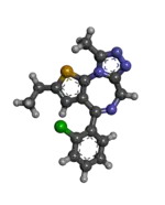 Etizolam (marketed under many brand names) is a thienodiazepine derivative[5] which is a benzodiazepine analog.[6] The etizolam molecule differs from a benzodiazepine in that the benzene ring has been replaced by a thiophene ring and triazole ring has been fused, making the drug a thienotriazolodiazepine.[7][8]
