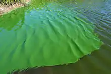 Cyanobacteria or blue green-algae is a gram negative bacteria, a phylum of photosynthetic bacteria that evolved between 2.3-2.7 billion years ago.[16] This prokaryote produces oxygen as a byproduct of its photosynthetic processes.[17] They have made a distinctive impact in pharmaceutical and agricultural industry due to their potential of making bioactive compounds with antibacterial, anti-fungal, antiviral, and anti-algal properties. Typically they form motile filaments referred to as hormogonia, which can form colonies and then bud and travel to colonise new areas. They have been located in environments including freshwater, oceans, soil and rock (both damp and dry), as well as arctic rock.