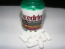 Excedrin is an over-the-counter headache pain reliever, typically in the form of tablets or caplets. It contains paracetamol (acetaminophen), aspirin, and caffeine. It was manufactured by Bristol-Myers Squibb until it was purchased by Novartis in July, 2005 along with other products from BMS's over-the-counter business. As of March 2015, GSK holds majority ownership of Excedrin through a joint venture transaction with Novartis.[1] On 18 July 2022, GSK spun off its consumer healthcare business (including Excedrin) to Haleon.