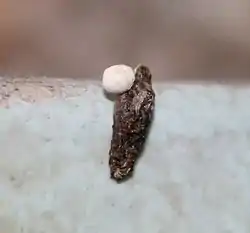White cast of uric acid defecated along with the dark feces by a lizard. Insects, birds and some other reptiles also use a similar mechanism.