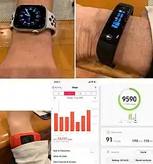 - Phillips, SM; Cadmus-Bertram, L; Rosenberg, D; Buman, MP; Lynch, BM (January 2018). "Wearable Technology and Physical Activity in Chronic Disease: Opportunities and Challenges". American Journal of Preventive Medicine. 54 (1): 144–150. doi:10.1016/j.amepre.2017.08.015. PMC 5736445. PMID 29122356.