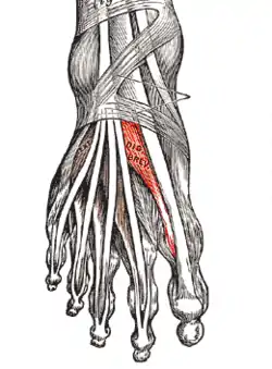 Nerve supplied by lateral terminal branch of Deep Peroneal Nerve (deep fibular nerve) (proximal sciatic branches S1, S2). Same innervation of Extensor Digitorum Brevis
