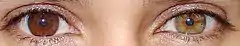 An example of complete heterochromia. The subject has one brown eye and one hazel eye.