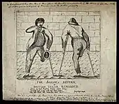 Rahmah ibn Jabir al-Jalahimah, once the most popular pirate in the Persian Gulf, was also the first known to wear an eyepatch after losing an eye in battle.[18][19] Ex-sailors, ashore, were sometimes portrayed as having an eyepatch to cover the loss of an eye.