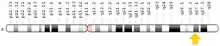 In human, the F9 gene is located on the X chromosome at position q27.1.
