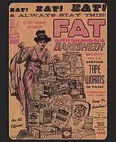 The 19th century also saw the first and one of the most dangerous fad diet pills, with the marketing of arsenic pills for weight loss, which not only did not work, but which dieters often consumed more quantity than the prescribed dosage. Some diet hoaxes also appeared, such as the tapeworms diet, where the dieters would purportedly willfully ingest tapeworms in the hopes they would reach maturity in the intestines and absorb food, until the dieter attains the weight loss goal and consumes an anti-parasitic pill to kill and hopefully excrete the worms, if the dieter was lucky enough to not experience gastric obstruction.[18][52]