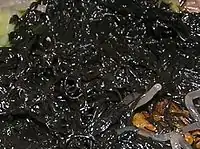 Fat choy (simplified Chinese: 发菜; traditional Chinese: 髮菜; pinyin: fàcài; Jyutping: faat³ coi³; Nostoc flagelliforme) is a terrestrial cyanobacterium (a type of photosynthetic bacteria) that is used as a vegetable in Chinese cuisine. When dried, the product has the appearance of black hair. For that reason, its name in Chinese means "hair vegetable". When soaked, fat choy has a soft texture which is like very fine vermicelli.
