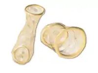 The female condom is a thin, soft, loose-fitting sheath with a flexible ring/frame or ring/foam disc at the closed end. They typically come in various sizes. For most vaginas, a moderately sized condom is adequate; women who have recently given birth should try a large size first. The inner ring or foam disc at the closed end of the sheath is used to insert the condom inside the vagina and to hold it in place during intercourse. The rolled outer ring or poly frame at the open end of the sheath remains outside the vagina and covers part of the external genitalia.