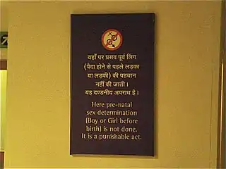 | Ban on ultrasound testing | 1996 | Bans prenatal sex determination |