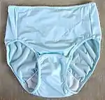The sanitary belt can be seen as a modern version of the menstrual belt, but more like a girdle. The function of the belt is to hold the pad in place while giving the user greater freedom of motion.[40] In Sweden, the product was introduced in the 1940s and was in use until the 1960s.[41] In the 1970s, the adhesive strip on the underside of the pad was introduced, allowing it to be attached to the underwear and held in place without the use of a girdle, safety pin or belt.[42]