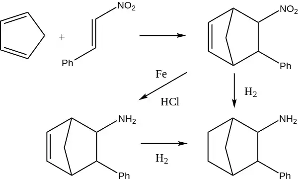 The Diels-Alder reaction of β-nitrostyrene and cyclopentadiene is described in a number of early papers.[8][9]