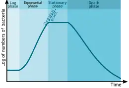 Fermentation begins once the growth medium is inoculated with the organism of interest. Growth of the inoculum does not occur immediately. This is the period of adaptation, called the lag phase.[7] Following the lag phase, the rate of growth of the organism steadily increases, for a certain period—this period is the log or exponential phase.[7]
