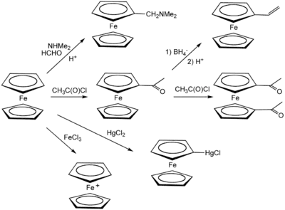 - Woodward and Wilkinson deduced it by observing that ferrocene underwent reactions typical of aromatic compounds such as benzene[15]