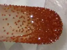Ferrocene, a precursor to iron nanoparticles, can be used as a catalyst for the production of carbon nanotubes.[83] The vinylferrocene can be made by a Wittig reaction of the aldehyde, a phosphonium salt, and sodium hydroxide.[84] The vinyl ferrocene can be converted into a polymer (polyvinylferrocene, PVFc), a ferrocenyl version of polystyrene (the phenyl groups are replaced with ferrocenyl groups). Another polyferrocene which can be formed is poly(2-(methacryloyloxy)ethyl ferrocenecarboxylate), PFcMA. In addition to using organic polymer backbones, these pendant ferrocene units have been attached to inorganic backbones such as polysiloxanes, polyphosphazenes, and polyphosphinoboranes, (–PH(R)–BH2–)n, and the resulting materials exhibit unusual physical and electronic properties relating to the ferrocene / ferrocinium redox couple.[82] Both PVFc and PFcMA have been tethered onto silica wafers and the wettability measured when the polymer chains are uncharged and when the ferrocene moieties are oxidised to produce positively charged groups. The contact angle with water on the PFcMA-coated wafers was 70° smaller following oxidation, while in the case of PVFc the decrease was 30°, and the switching of wettability is reversible. In the PFcMA case, the effect of lengthening the chains and hence introducing more ferrocene groups is significantly larger reductions in the contact angle upon oxidation.[82][85]